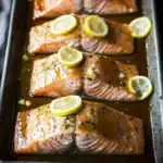 A simple and delicious maple glazed salmon recipe cooked on a sheet pan for easy preparation and cleanup. The sweet and savory glaze perfectly complements the tender, flaky salmon.