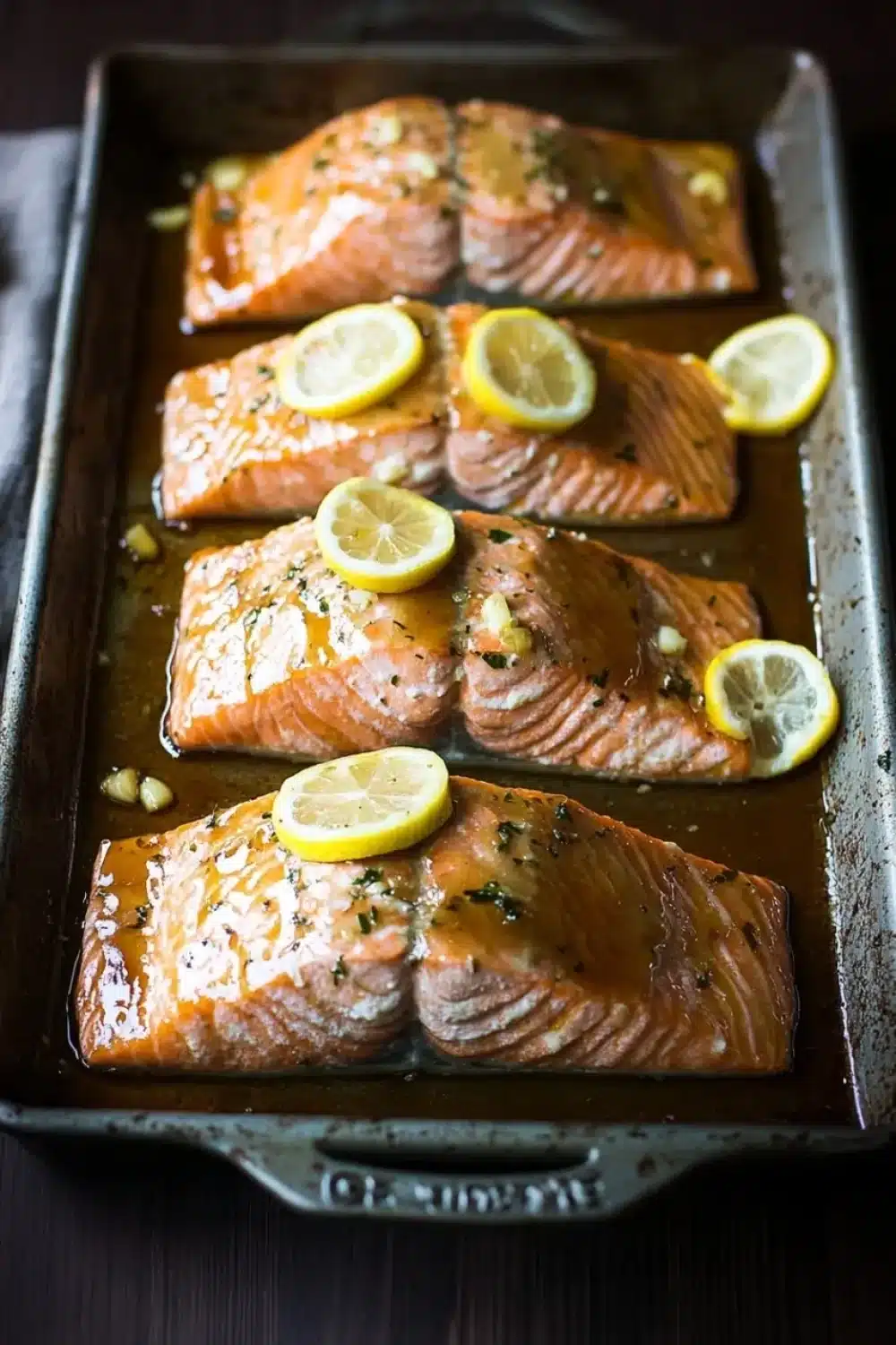 The first time I made this salmon, I was juggling a few things in the kitchen — half-listening to a podcast, half-checking my phone, and definitely a little distracted by the way the maple syrup bubbled as it hit the hot pan. The aroma of garlic mingling with the sweet glaze filled the air, and I caught myself sneaking a small taste of the glaze before it even hit the oven. Watching the salmon bake, those lemon slices crisping up just right, was oddly satisfying. It’s not always perfect; I probably left it in a minute or two longer than I should have, but honestly, that crispy edge made it even better. The tender, flaky fish paired with that sticky, flavorful glaze made me want to make it again the very next night.