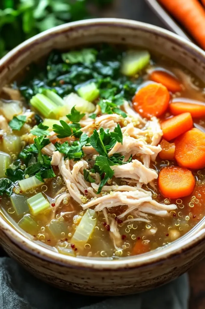 This crock pot chicken quinoa soup transforms simple ingredients into a soothing bowl of warmth. It’s about those evenings when you just want to sink into the couch with something nourishing and uncomplicated.