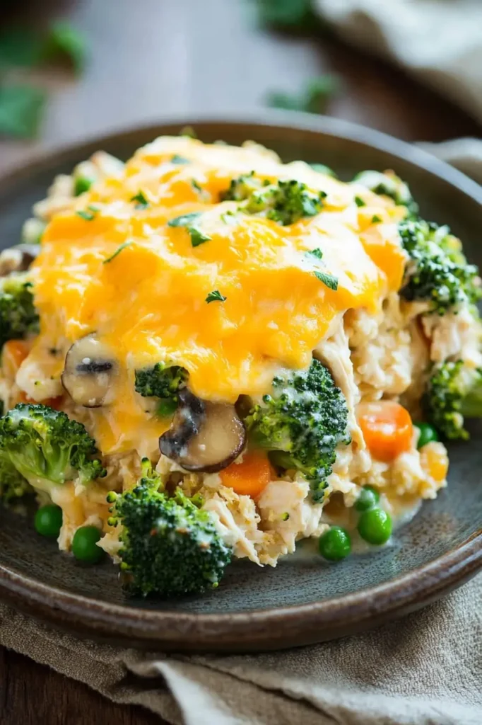 This cozy casserole blends tender chicken, vibrant broccoli, and creamy cheese sauce into a comforting dish that’s as simple as it is satisfying.