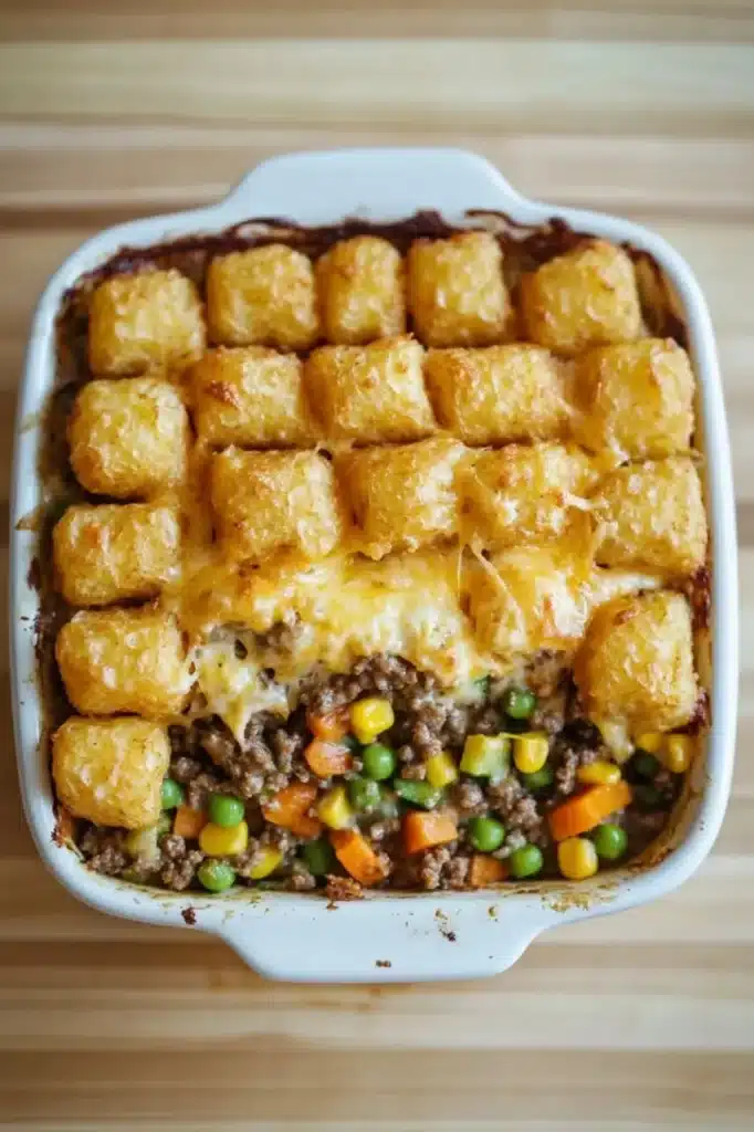 This cozy casserole blends savory beef, colorful veggies, and crispy tater tots into a comforting dish that fills the kitchen with warmth and nostalgia.