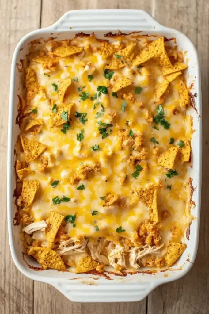 Crisp Doritos meet creamy nacho cheese in this layered chicken casserole that’s as comforting as it is crave-worthy. Dive in and savor every cheesy bite.