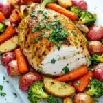 A simple and flavorful sheet pan dinner featuring tender roasted turkey breast with a medley of roasted vegetables. Perfect for an easy weeknight meal or a casual dinner.