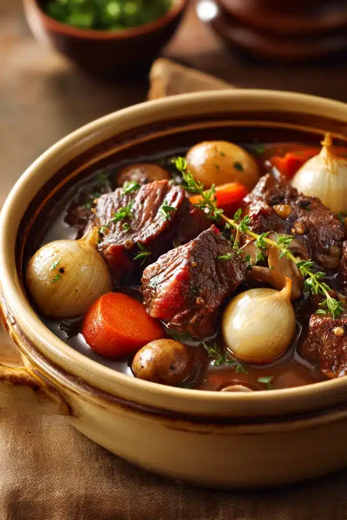 Discover the comforting richness of Beef Bourguignon, a stew that turns simple ingredients into a deeply satisfying experience. Let the aromas and tender flavors fill your home as you slow-cook a meal worth every minute.