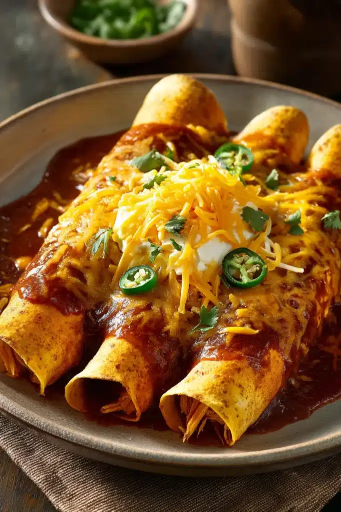 Discover the joy of tender chicken wrapped in spicy, cheesy goodness with this easy enchilada recipe. It’s a dinner that invites comfort and a little kick.