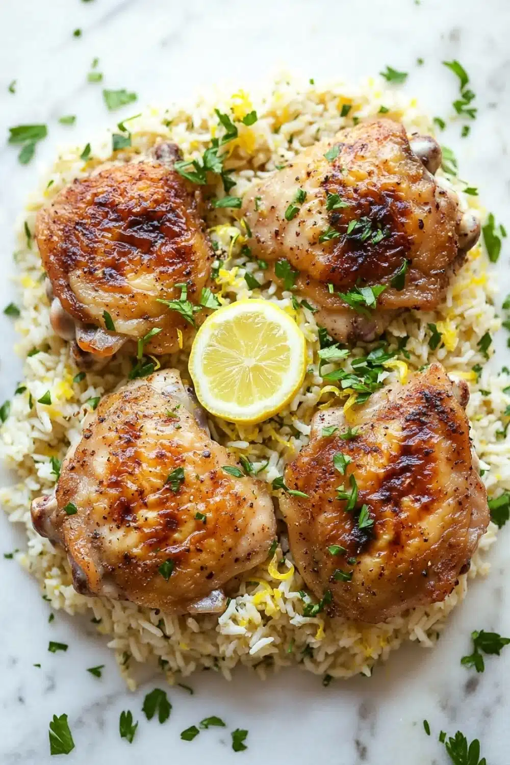 A flavorful and easy one-pot meal featuring tender chicken thighs cooked with fragrant lemon-infused rice and aromatic herbs. Perfect for a quick weeknight dinner.