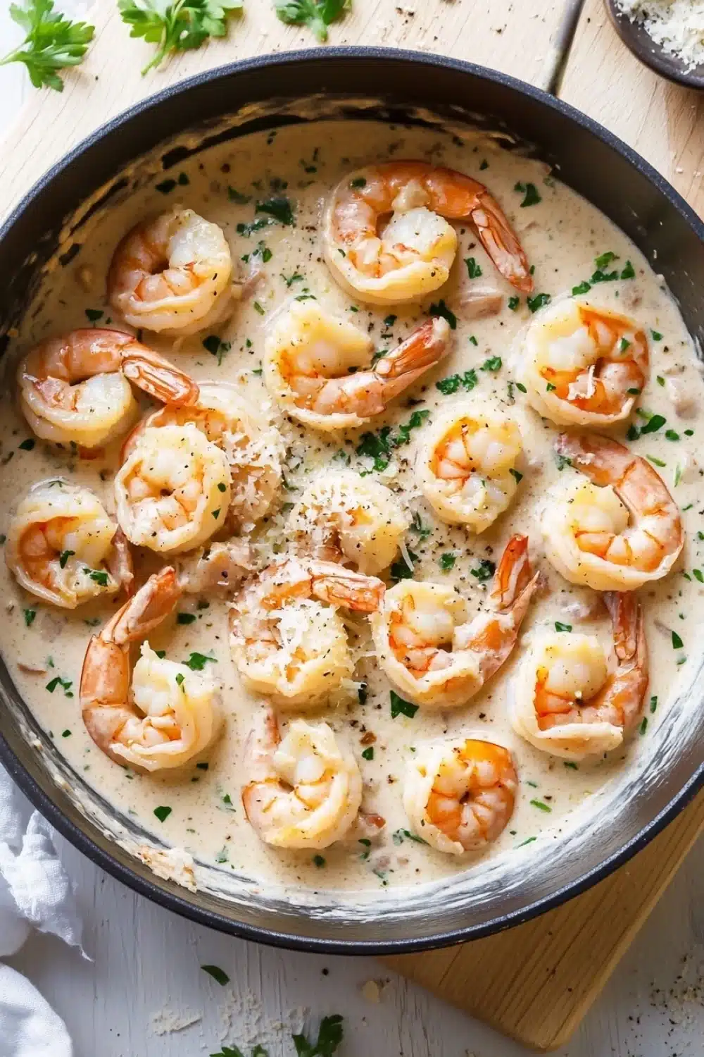 A quick and easy one pot creamy garlic shrimp recipe with tender shrimp cooked in a rich, garlicky cream sauce. Perfect for a weeknight dinner served over rice or pasta.