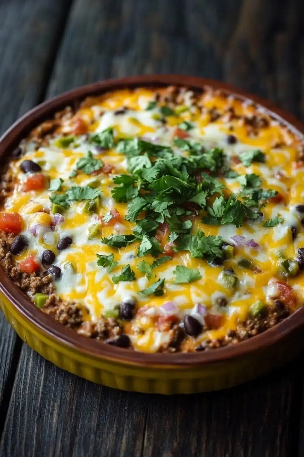 I remember the first time I made this dip—halfway through cooking, I got distracted by the game and almost forgot to add the cheese. Luckily, the smell reminded me just in time. Watching the cheese melt into the warm beef mixture, then broiling until bubbly, was its own little moment of comfort. It’s not fancy, but it’s exactly the kind of cozy indulgence you want when you’re surrounded by friends or just craving something hearty. The cool touch of Greek yogurt on top balances the richness in a way I wasn’t expecting but now can’t do without.