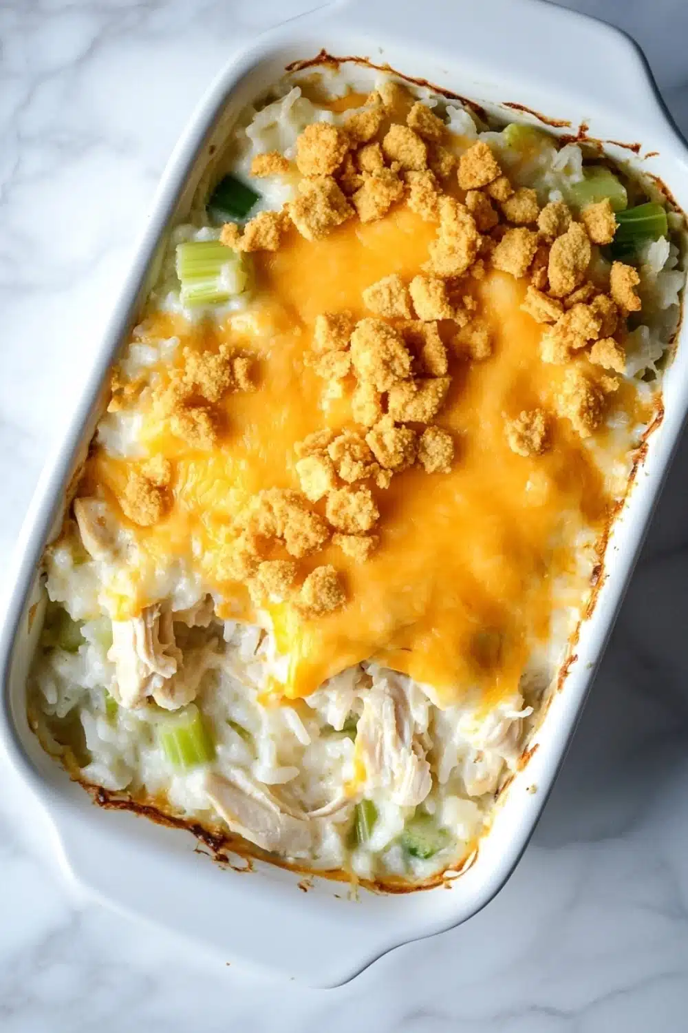 A comforting and easy-to-make chicken rice casserole featuring tender chicken, creamy cream of chicken soup, and fluffy rice baked to perfection.