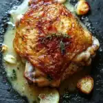 I remember the first time I tried this method—it was a busy weeknight, and I was juggling more than usual. I didn’t have time to babysit the stove, but I still wanted that golden, crackling chicken skin. So, I placed a heavy skillet right on top of the chicken thighs, just like the recipe suggested. The smell of garlic and lemon simmering in the pan sauce was enough to pull me out of the day’s chaos. The skin came out crispier than I expected, while the meat stayed juicy underneath that weight. I might have burned my finger on the skillet lid because I wasn’t paying full attention—typical me—but it was worth every sizzle and pop. Sometimes, the little mess-ups make the story better, right?