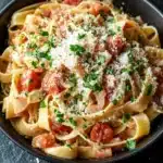 Some dinners need to feel like a warm hug — not a project. That’s exactly what this one pot tagliatelle pasta delivers. It’s the kind of dish I turn to when my day has been a little chaotic and the last thing I want is to wrestle with a sink full of dishes. The tomatoes, garlic, and herbs simmer together to create a cozy, fragrant sauce that clings perfectly to the tender pasta.