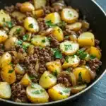 A hearty and flavorful ground beef and potato skillet that’s perfect for a quick weeknight dinner. Tender potatoes and savory ground beef cooked together with onions and spices for a comforting one-pan meal.