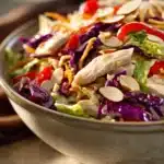 That first forkful was a little revelation. The crisp Napa cabbage snapped between my teeth, the red bell pepper added a juicy pop, and the ginger in the dressing gave a subtle warmth that lingered just enough. I could almost hear the quiet crunch of the chow mein noodles as they crumbled between bites, mixing with the toasted sesame seeds for an extra nutty note. It’s the kind of salad that feels both light and indulgent, perfect for when you want to eat well but still savor every bite.