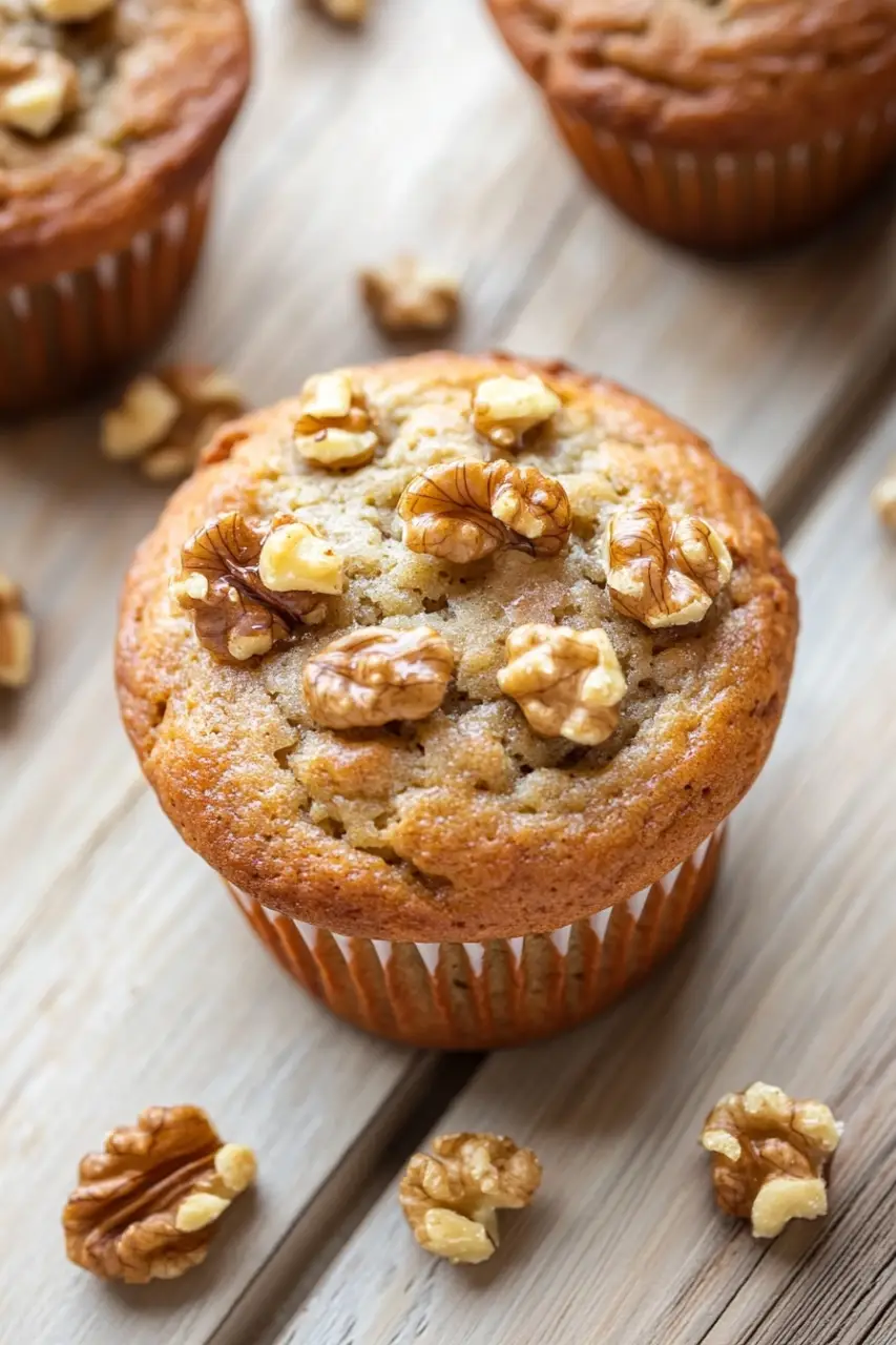 Deliciously moist banana nut muffins made with ripe bananas and crunchy walnuts. Perfect for breakfast or a snack.