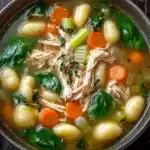 I remember the last time I made this soup, the kitchen was a bit chaotic—kids running around, a phone buzzing somewhere nearby, and me trying to juggle timing. I wasn’t quite sure how the gnocchi would hold up in the broth, but as the aromas of garlic and thyme filled the air, everything else faded. The steam rising from the pot caught my attention, and when I finally ladled a bowl, I noticed how the spinach wilted just right, and the chicken was tender but not dry. It wasn’t perfect—I might have added a pinch too much pepper—but that little imperfection made it homey, real. I ended up eating it while perched on the couch, notebook forgotten on the table next to me, just savoring the quiet moment.