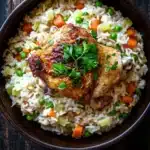 A simple and flavorful one-pot chicken and rice recipe that combines tender chicken thighs with aromatic rice and vegetables for a comforting meal.