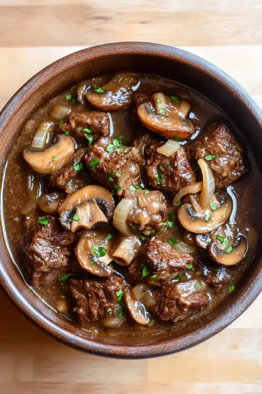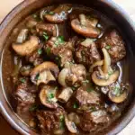 There’s something quietly satisfying about coming home to a house filled with the aroma of slow-cooked beef and mushrooms. I remember the first time I made this dish; I was distracted by a phone call that ran longer than expected, and halfway through, I wondered if the beef would ever get tender. But that’s the beauty of this recipe—time does the work, and the flavors develop while you’re busy living your day. By the time I finally sat down, the meat was falling apart, the mushrooms were perfectly soft, and the sauce had that deep, rich color that promises comfort in every bite. It’s not fancy, but it’s exactly what you want after a long day.